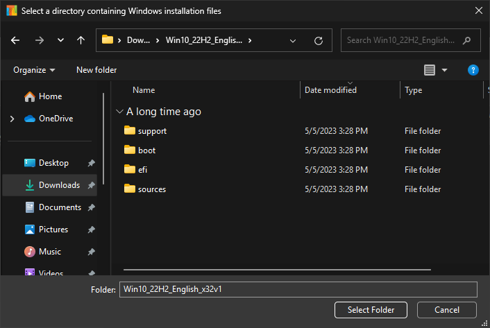 Add→Image directory. 🖼️ - Open the folder where you extraced the Windows ISO; it should look like this.